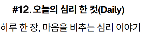 "매일 단 한 컷의 심리학. 짧지만 오래 머무는 울림이 오늘 하루를 새롭게 비춘다.